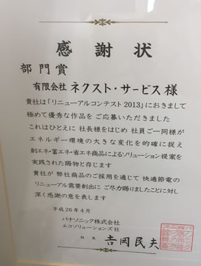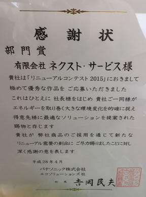 パナソニック株式会社のリニューアルコンテストにて部門賞を受賞しました。