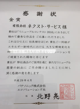 パナソニック株式会社のリニューアルコンテストにて金賞を受賞しました。