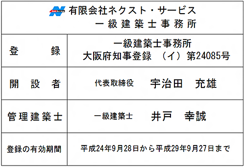 有限会社ネクスト・サービスは、2012年9月28日より「一級建築士事務所」となりました。 電気工事、医療機器販売、IT事業に続き、建築関係についてもお気軽にご相談下さい!